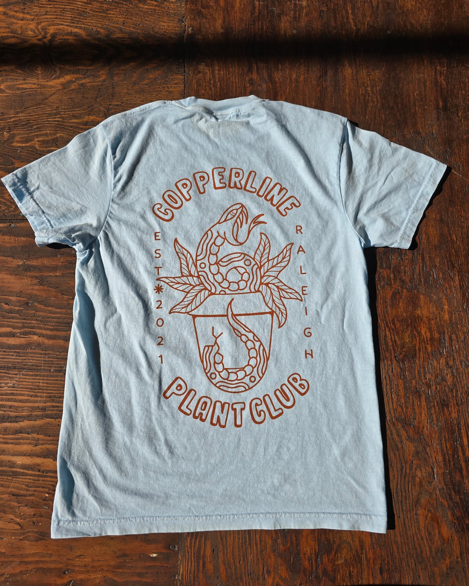 We are so excited to launch our new shirt design, courtesy of Raleigh's own Gabi of Tattoo Honey! These shirts have Copperline Plant Co. on the breast pocket area and the sickest looking snakey boy on the back! People will wonder if you're in a biker gang...then you can tell them it's actually just for your favorite plant shop!